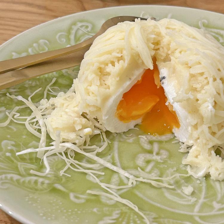 『ポテトサラダ』を頼むと、驚く。最初は中の卵が見えず白いモンブランの様な状態から、とろーり卵が!まろやかなじゃがいもに卵がとっても合う◎