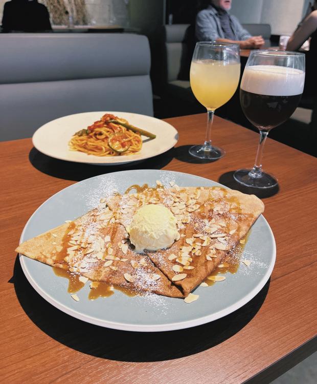 1番気になった『キャラメルサレ』のクレープ! ドリンクは、細かい泡とコーヒーの二層が美しい「アイスニトロ」をいただきました。初めて聞くメニューは、ついつい試してみたくなります◎「トマトソースパスタ」もとっても美味しかった!