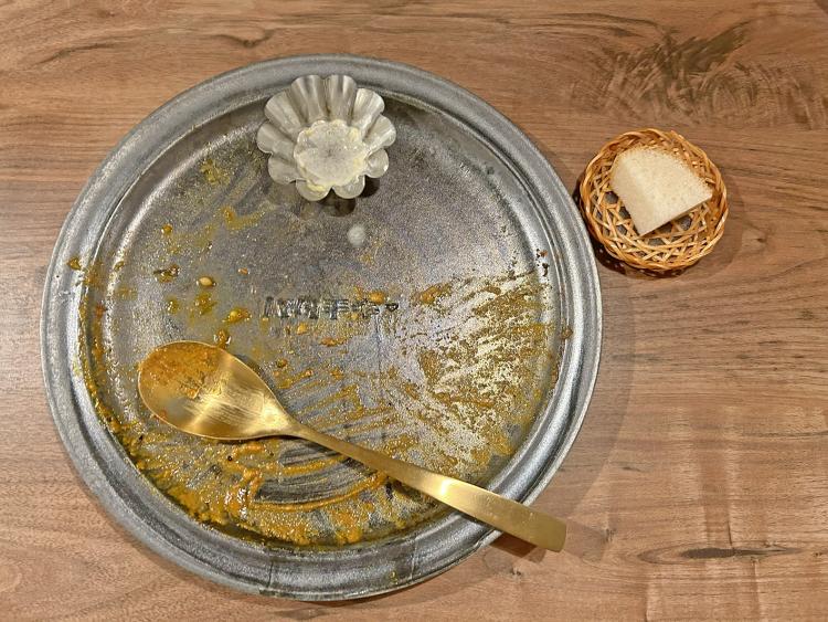 そして最後は、米粉の手作りパンが出てきます。残ったカレーのルーにつけて食べます。とってもモチモチとした食感。店主が何度も試行錯誤を重ねて完成したパンらしく、本当に美味しすぎてびっくりしました。「このパン販売して〜」という声もちらほらあるんだとか。最後のパンまで美味しかったです。