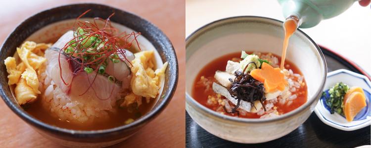 鰆の“たたき”と“漬け”の両方が楽しめ、刺身、丼、最後に茶漬けと3回味わえる「海辺の料理小宿はつしろ」の『さわら茶漬けご膳(2,500円)』や、炙った鰆を秘伝のタレに3日間深漬けし、“抹茶鰹だし”をかけていただく「宗像海人食堂 やっさん」の『さわら茶漬け(1,500円)』、鰆の西京焼きでお茶漬けを楽しむ「和食レストラン末広」の『鰆の西京焼き茶漬け(2,000円)』など、どの店舗もこだわりが詰まりまくりです。
