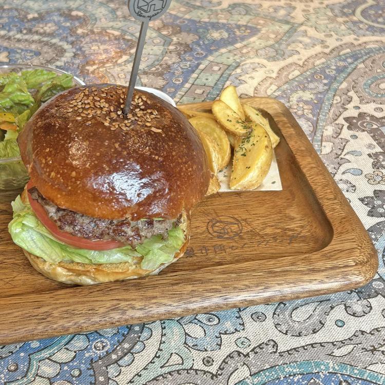 本日の主役登場。このサクッとしたバンズと肉厚ジューシーなボリュームお肉に今にもヨダレが出そう。味はしっかり裏切らない。見た目から大満足◎