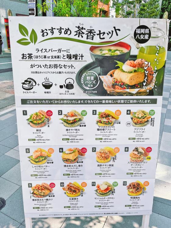 ライスバーガーとお茶、お味噌汁がセットになった『茶香セット』があるらしく、ゆったりご飯とお茶を楽しめそう♪開放感のある空間で、Wifiとコンセントも完備されているので作業するのにも◎