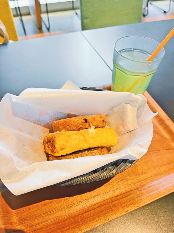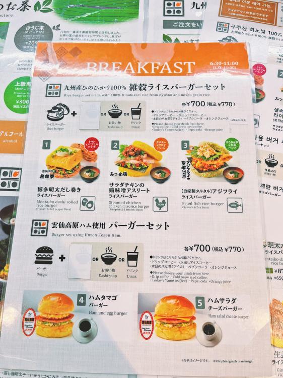 モーニング(6:30〜11:00)の時間帯にオーダー可能な『雑穀ライスバーガーセット』の中から、1番惹かれた『博多明太だし巻き』を注文。朝から空いているお店ってそんなに多くないからありがたい!お客さんは、観光客の方が多い印象です◎