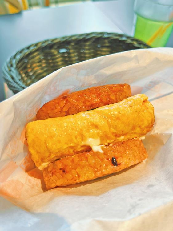 トマトとパプリカの野菜パウダーと、老舗の稚加栄の明太子を使ったライスバンズに、熱々で分厚いだし巻き卵。大満足なボリューム感。