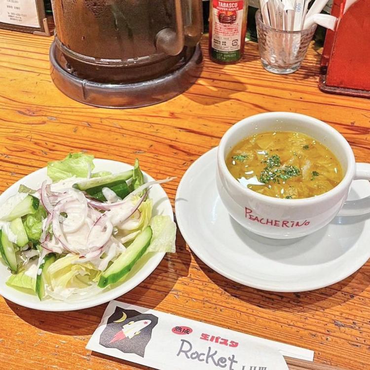 『生パスタランチ』(1200円) にはサラダとスープがついてくる。そしてなんとプラス100円でコーヒーも、、!このお値段で沢山ついてくるのはとってもお得◎