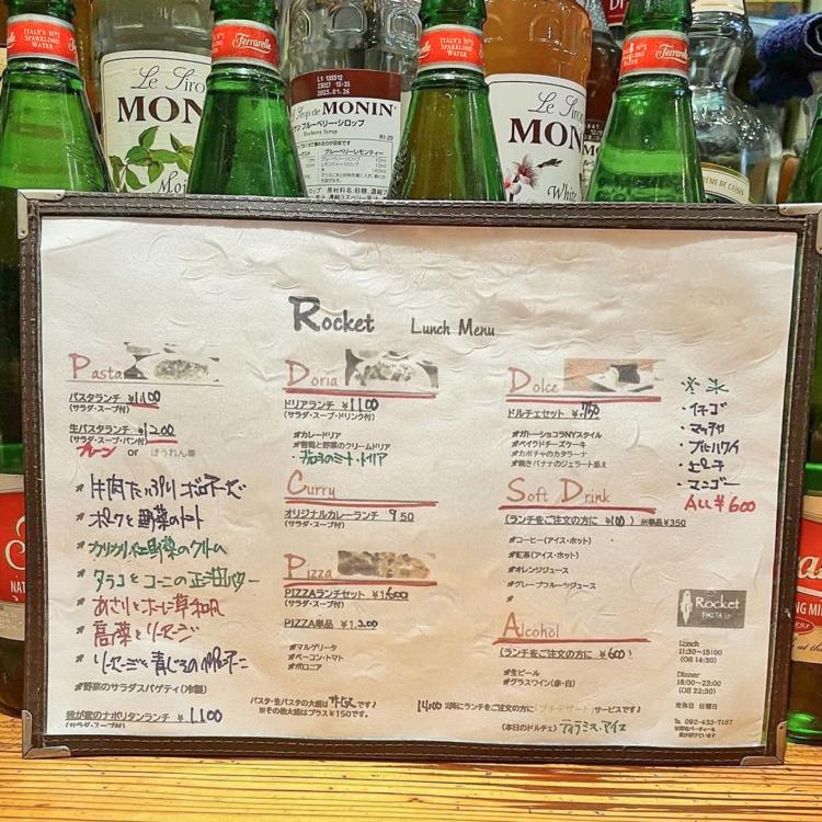 ランチメニューはこんなに種類豊富。生パスタ以外にもピザやドリアをはじめカレーまでも!リピ確定のカジュアルイタリアンと出会えた。次回は夜のロケットも楽しんでみたい。