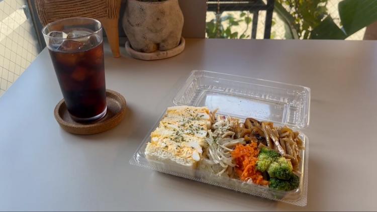 たまごサンド&野菜をたっぷり使った日替わりのお総菜。