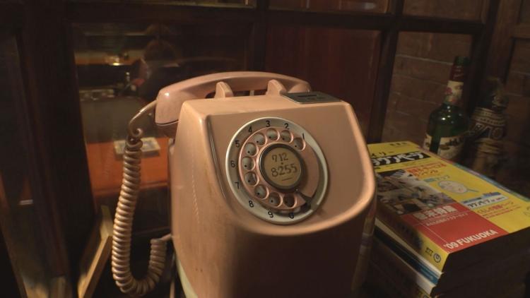 “電話ボックス”の中には、現役のダイヤル式公衆電話がありました。硬貨を入れてダイヤルを回すと、ちゃんとつながりますよ。