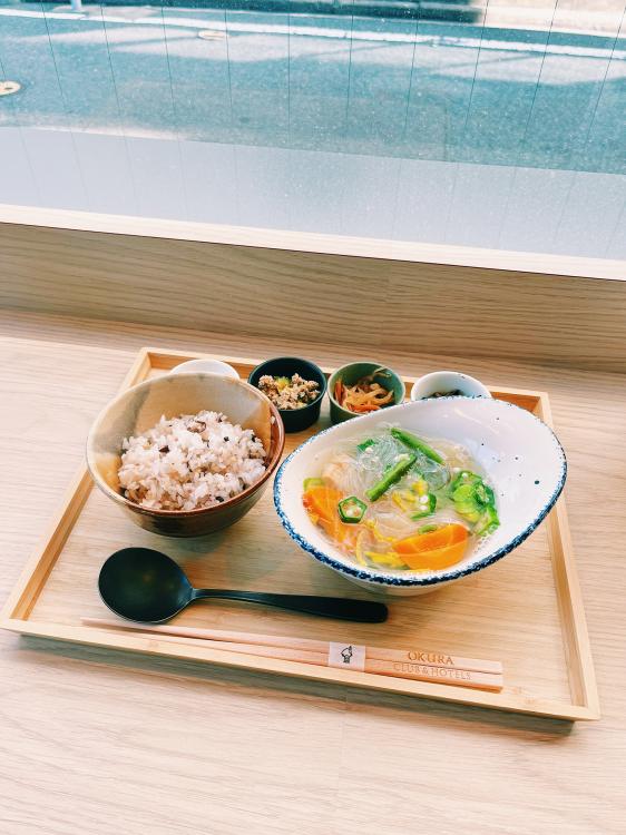 『食べるスープセット』でスープは『黄金だしの食べるスープ』を注文。「黄金だし」は福島のかつお節、京都の鰆の煮干、北海道の昆布の3つをかけ合わせたこだわりのお出汁。