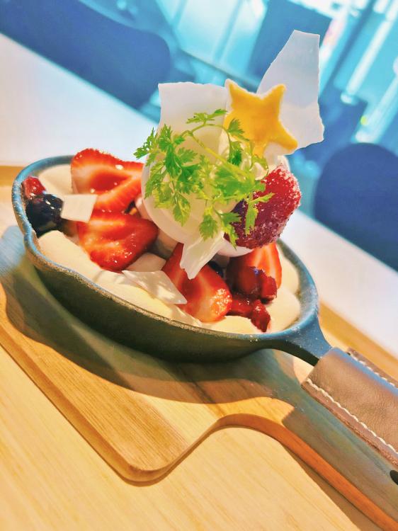 米粉を使った冬のスイーツ『ウィンターパヌッキー』。パンケーキのような見た目だけど、サクサクの食感で楽しい◎かわいい星のクッキーと苺が寒い季節にぴったりのスイーツです。