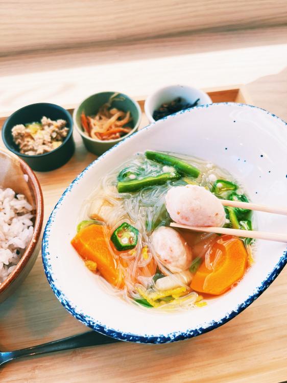 ゆず香るあっさりなスープに、カニつみれと春雨、季節のお野菜がたっくさん!美味しい上に、からだも喜ぶものって嬉しいです。