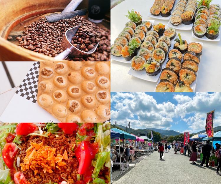 ●12/3(日)壺焼き専門店芋次郎商店(焼き芋)/PAPA‘S PUFF STAND(米粉ワッフル)/KCかなちゃん(からあげ・ホルモン焼)/Cafe&琉球ガラス Alohawaii(あぐー豚ホットドッグ、本場沖縄タコライスなど)/Bamboo Coffee Roasters(竹炭焙煎コーヒー)/とりのや(鶏の炭火焼、チュロス)/vira-laguna&mima(アクセサリー、ワークショップ)/まつりや(たこ焼き、もちもちなかがわやき)/y‘sキッチン(フルーツ飴、チョコバナナ)/88KITCHEN(バインミー、グリーンコーヒー、スープ)/angler(ライスバーガー アジフライ)/キッチンペペロン(豚バラ串焼き、ウィンナーベーコン巻き焼き)/BETSUBARA(焼鳥、フルーツ飴)