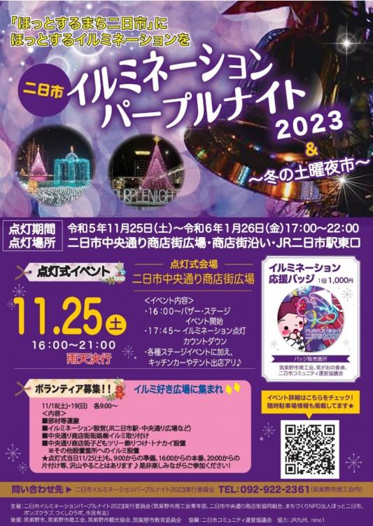 問い合わせ先:092-922-2361(二日市イルミネーションパープルナイト2023実行委員会)