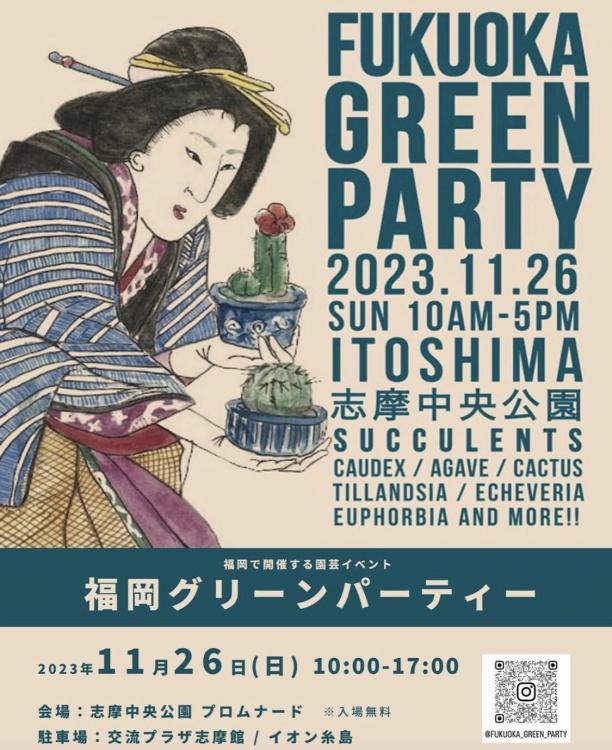 11月26日(日)は、福岡県糸島市の志摩中央公園で、福岡県内を中心とした多肉植物を扱う19店舗が一挙に集う『福岡グリーンパーティ―』が開催されます。