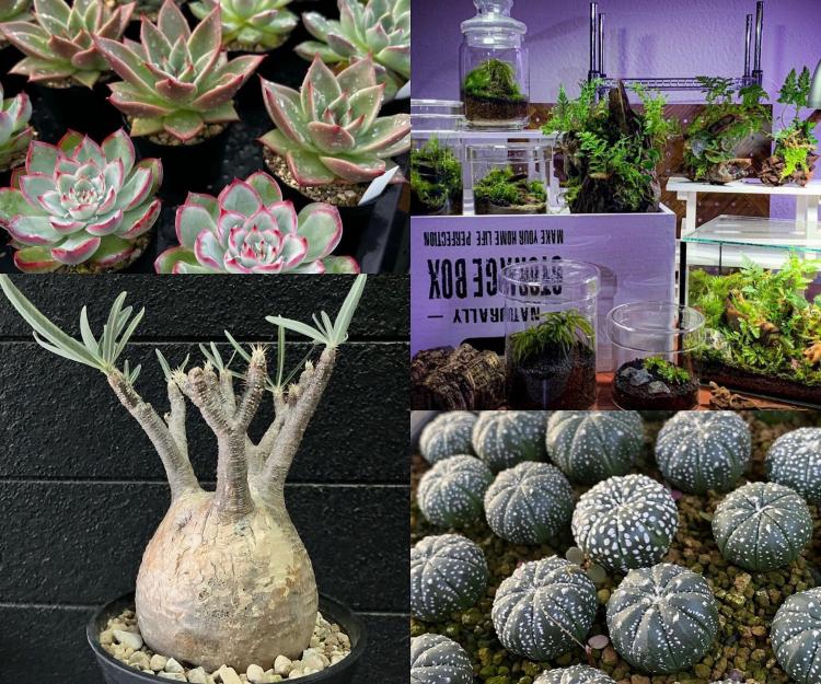 19店舗といっても、店舗を持たず趣味で育てている店主がほとんど。「普段お店では見かけない、この日しか出合えない植物がたくさん並びます!」と主催者のみなさん。エアプランツやサボテン、苔テラリウム、塊根、観葉植物など約1000種類、3000個以上の植物たちがズラリと集まるそうです。