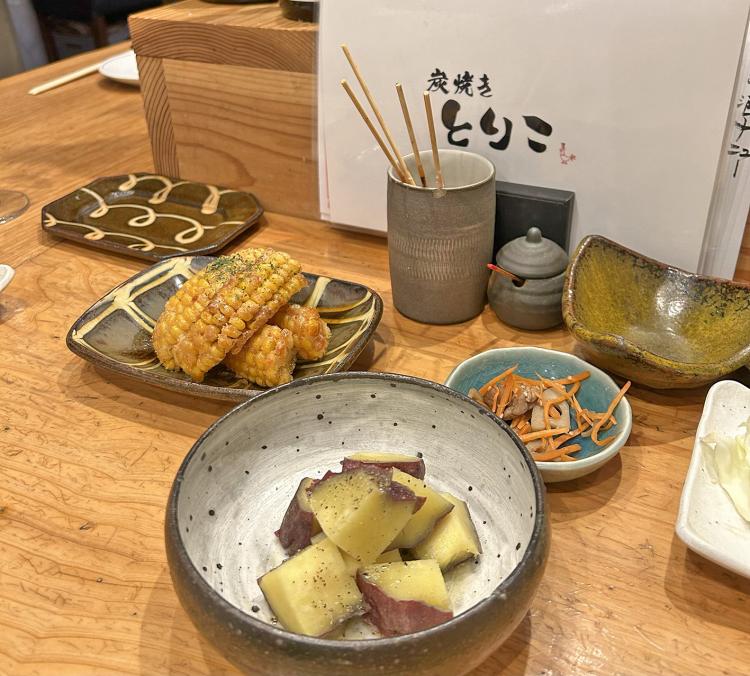 そして最後は『紅はるかバター焼き』と『とうもろこし唐揚げ』をいただきました。秋の味覚もしっかりと楽しむことができ大満足。焼鳥だけでなく一品料理も美味しくて、そしてスタッフさんの接客も気持ちよく、私もこのお店の"とりこ"になっちゃいました...。