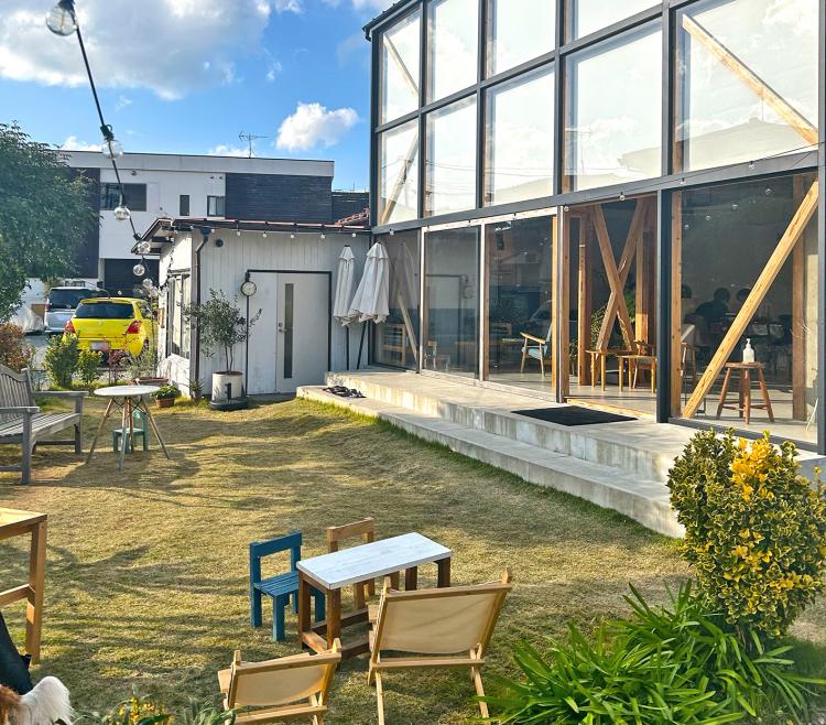 早良区干隈の住宅街にある隠れ家カフェ。ずっと行ってみたくてやっと行けた念願の場所です...!お庭には芝生やお花が植えられていたり、子どもが遊べるような遊具やイスが置いてあったり、寛げる空間でした。