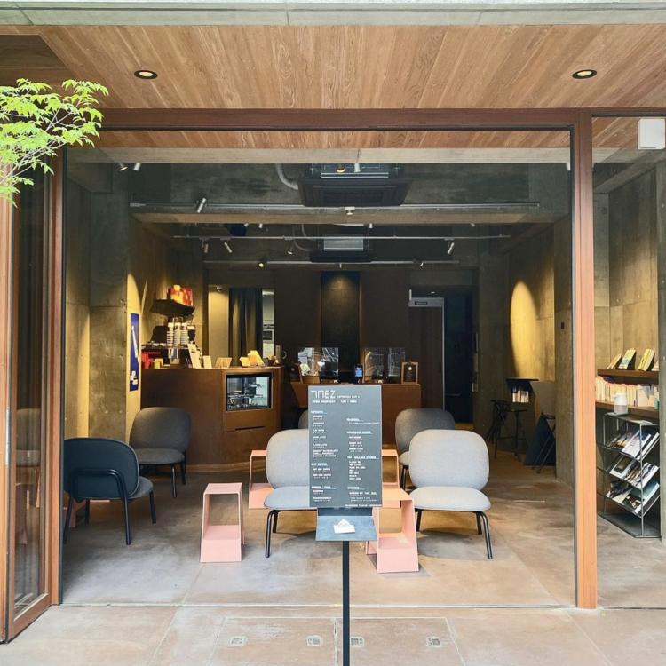 博多駅前にあるこちらのお店。『TIMEZ ESPRESSO BAR&』。「本」がテーマの宿泊施設『BUNSHODO HOTEL』の1階にある解放感に溢れたカフェ。