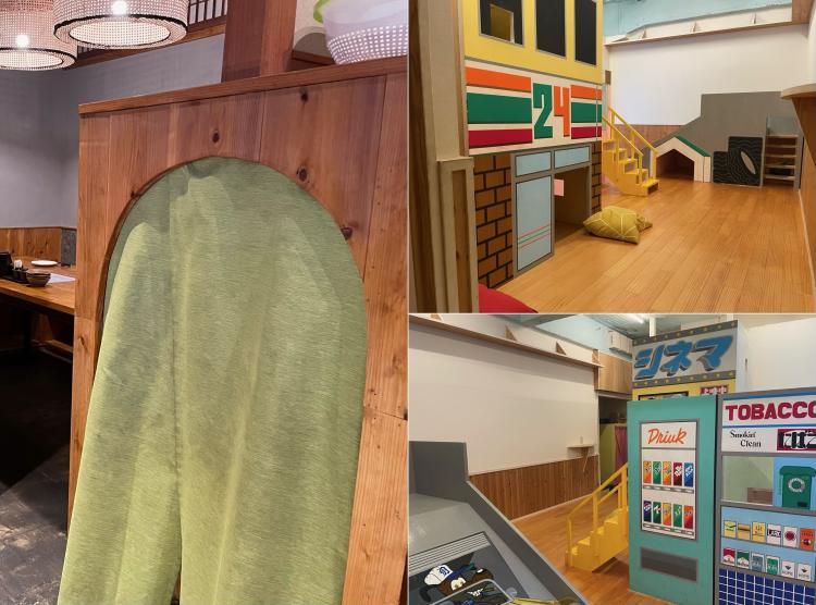 週末、取材に行ったのですが、オープンと同時に子連れのお客さんが次々とやってくるではありませんか。その理由は秘密のトンネル。緑色ののれんをくぐっていくと、そこには子どもたちの楽園が!隠れキッズルームが出現します。キッズルームには滑り台など体を動かす遊具があるので「子どもが食後にあちこち動き回って困る!」という子連れママにオススメです。