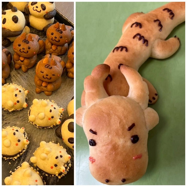 創業時から、子どもたちが喜ぶかわいいパンを作り続けている人気店。毎年恒例の“干支パン”を出しており、今年も完成したそう。「弱そうですが、童夢の森らしくかわいく仕上げました!」とお店の方が話す“辰パン”「たっちゃん」(350円)は写真右の子です。