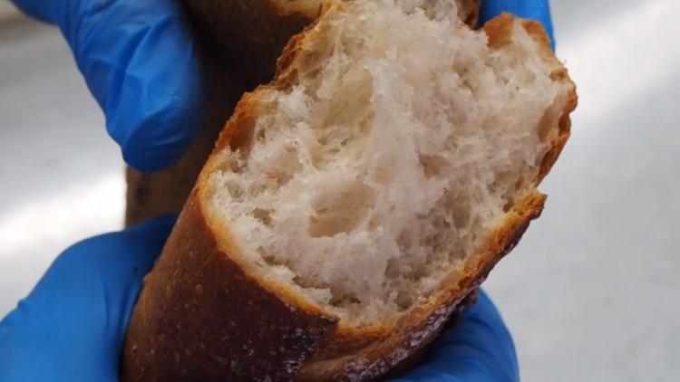 高温・短時間で一気に焼くため水分が外に抜けにくく、外はカリッ、中はしっとり。糸島産の小麦とライ麦、全粒粉を使用。