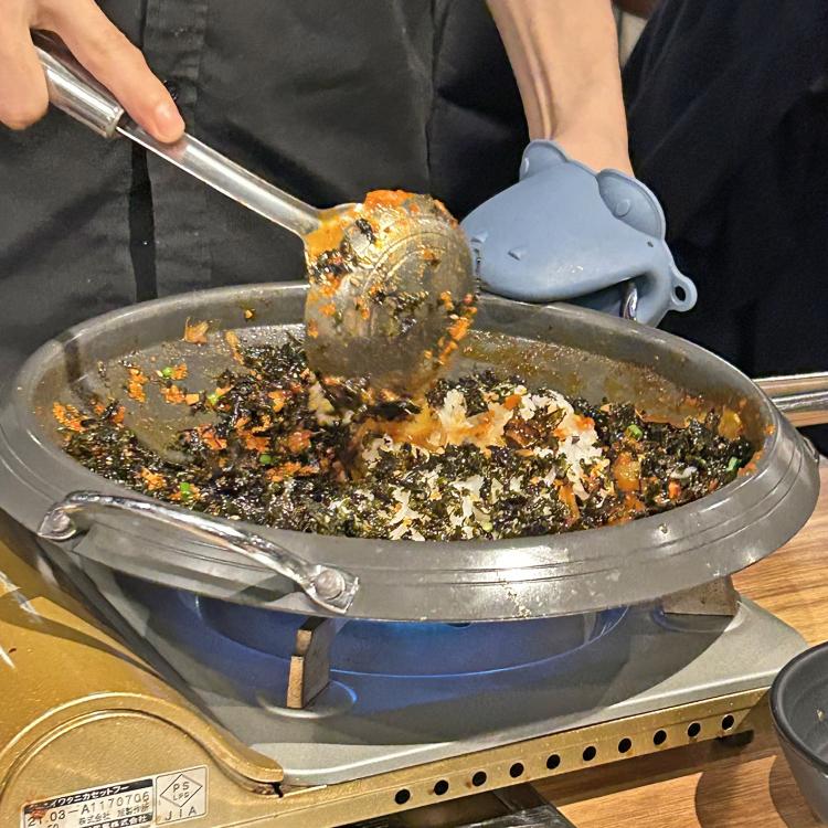 締めはもちろん、とびっこと韓国海苔が入った『ポックンパ(焼飯)』!ナッコプセのスープが絡んだお米はもちろん、プチプチ食感のとびっこがたまらない。リピート確定です◎