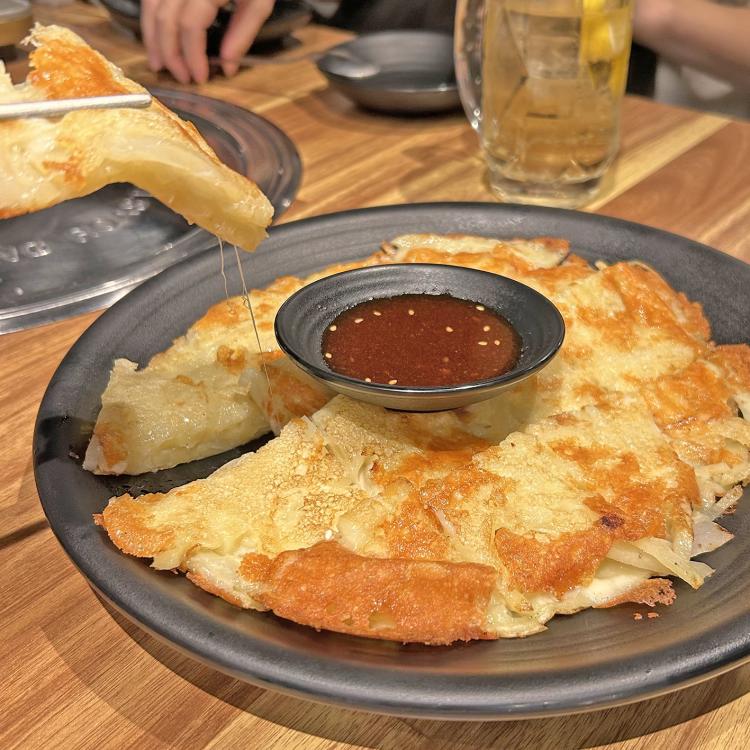 『チーズジャガイモチヂミ 』(1450円)。ふんわりモチモチな食感にやみつきに!女性でもぺろっと平らげられる量◎