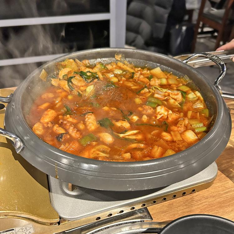 今回お目当ては、、、最近サムギョプサルよりも流行中の『ナッコプセ』(3800円)!タコをはじめとした海鮮にホルモン、春雨等が入った旨辛鍋。これが本当に美味しい。