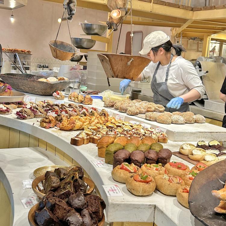 醍醐味は、目の前で実際にパンを作っている工程を全部見ることができ、プチ職業体験の気分に。出来立てパンがどんどん並べられる光景を眺めるだけでも幸福。