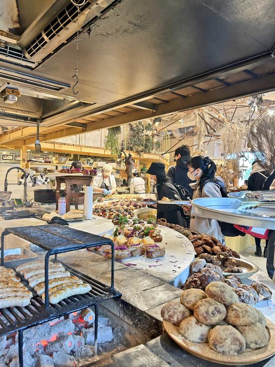 店内でドリンクを頼んでイートインも可能( ※イートインはワンドリンク制)。その場で出来立てを食べれるのはパン好きには最高の瞬間!ぜひパンのファッションショーを目の前でご覧あれ。