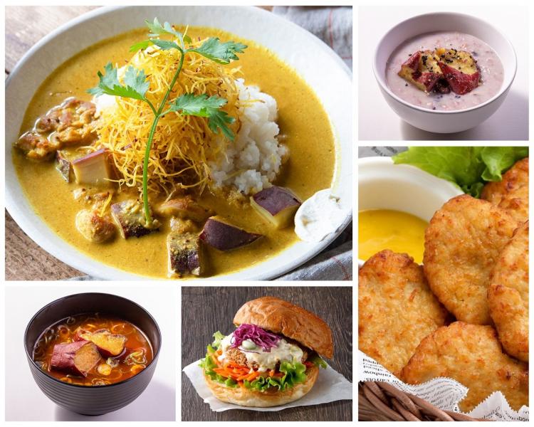 この他にも、「やきいもの黒ごまジンジャーミルク五穀がゆ」「やきいもの旨辛チゲ」「焼き芋コロッケバーガー」などまだまだありますよ!!