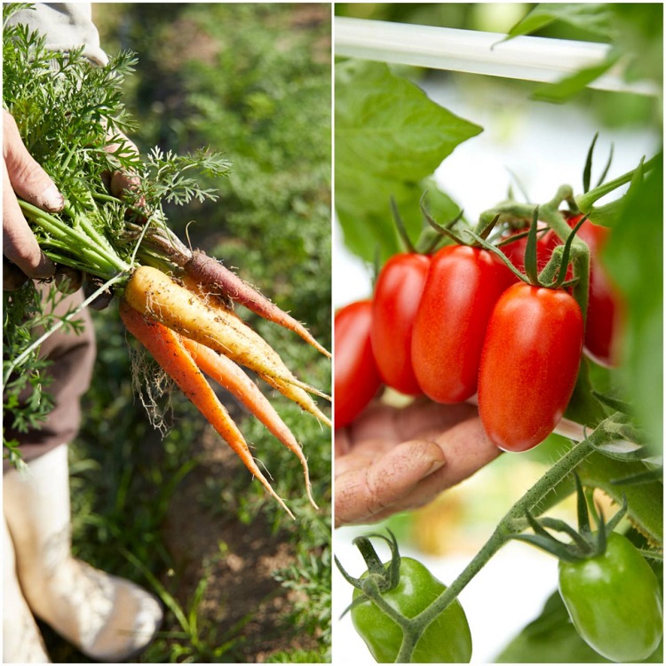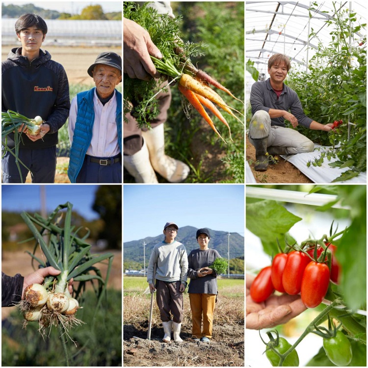 地元産飼料にこだわって育てる『むなかた牛』や『むなかた鶏』といった畜産物、自然栽培の米や除草剤・農薬を使わない露地栽培のサトイモ、ニンジン、なめらかな肌の小カブにまるでフルーツのようなミニトマト、身が締まって甘いタマネギと農作物も豊富です。