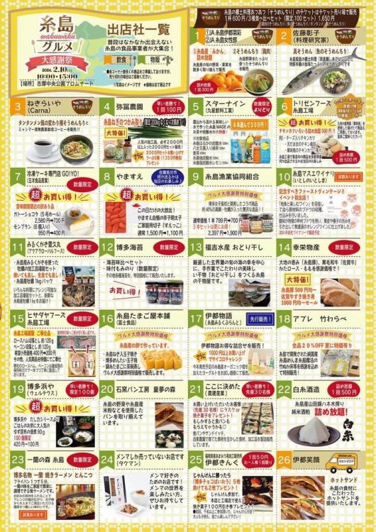 糸島にある食品・加工品の生産者26社が大集合し、工場直売の破格グルメが並びます。