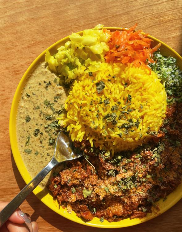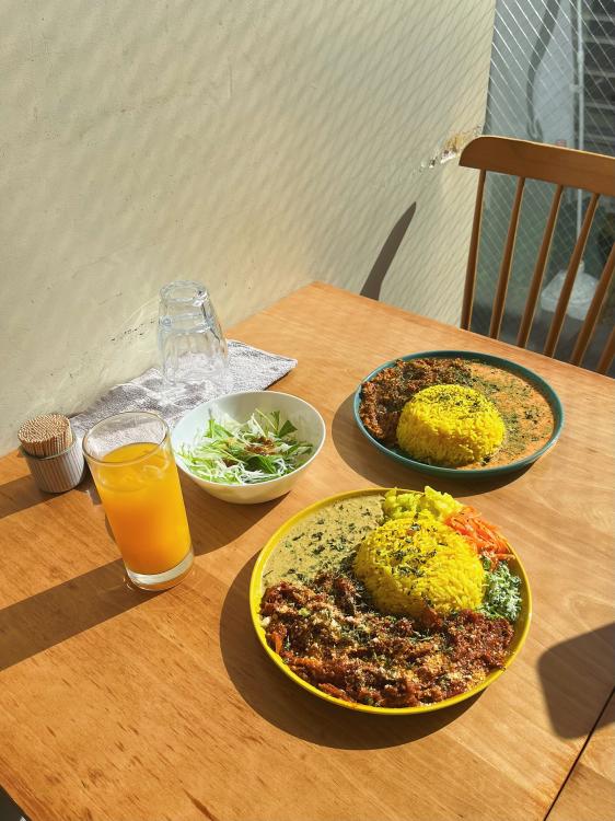 彩り豊かで見た目も楽しいカレーになりました◎ 左にあるのダルカレーで、私の中でどハマりで。これを食べにまた来たいと思うぐらいおいしかった!