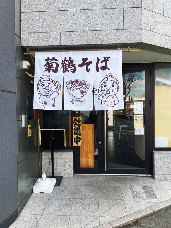 気になる『菊鶴そば』という店名の由来は、店主さんの2人のおばあちゃんのお名前からとっているそう。幼い頃、おばあちゃんと食べていた思い出の味を再現しているんだって!暖簾はお2人の似顔絵かな!?