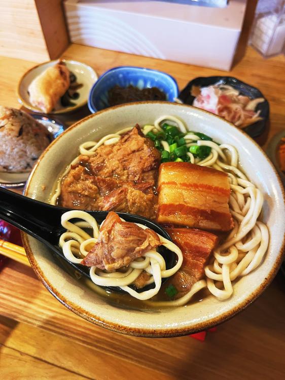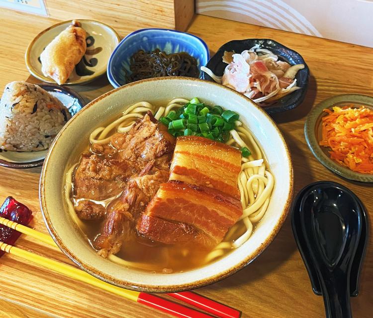 優しくあっさりとした鰹出汁のスープ。そして手間ひまかけて煮込まれたお肉はとっても柔らかくて味もしみしみ。味変でカレー粉やコーレーグースを入れるのも最高です。