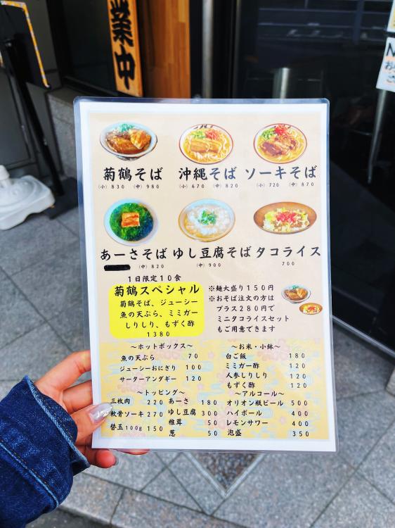 お昼時、お店に着くとすでに並んでいる人達が。待っている間にメニューを眺めて、今回は限定10食の『菊鶴スペシャル』を注文◎ 楽しみ、楽しみ!