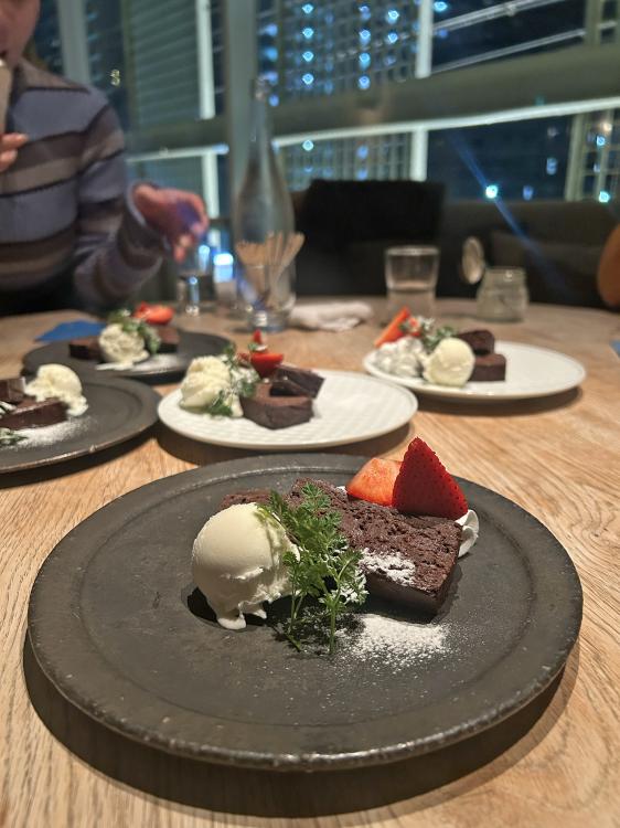 どのメニューも美味しすぎたので、最後は〆のデザート。 『滑らかプリン』や『ロールケーキ』など3〜4種類のデザートがありましたが、今回注文したのは、 アイスといちごがトッピングされた『チョコブラウニー』。甘すぎず、赤ワインにも合うような、濃厚なチョコレートの味わいでした。