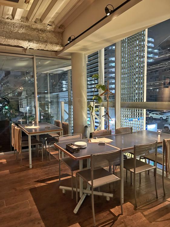 店内はカウンター席、テーブル席、ソファ席があ離、ゆったりと落ち着いて過ごすことができます。店内の照明も落ち着いた感じで、全面ガラス窓の開放的な空間もお気に入りです。