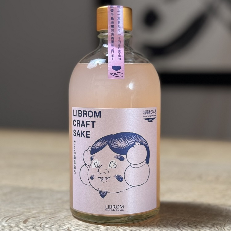 日本酒をはじめ、ワイン、ビールなど、各蔵元の選りすぐりの銘酒が勢ぞろい。店内に醸造所とバーを併設する『LIBROM』(福岡市高砂)は、クラフトサケ『LIBROM さくらあまおう』を数量限定で販売。売り上げ1本あたり1000円が、能登半島地震災害義援金として寄付されます。