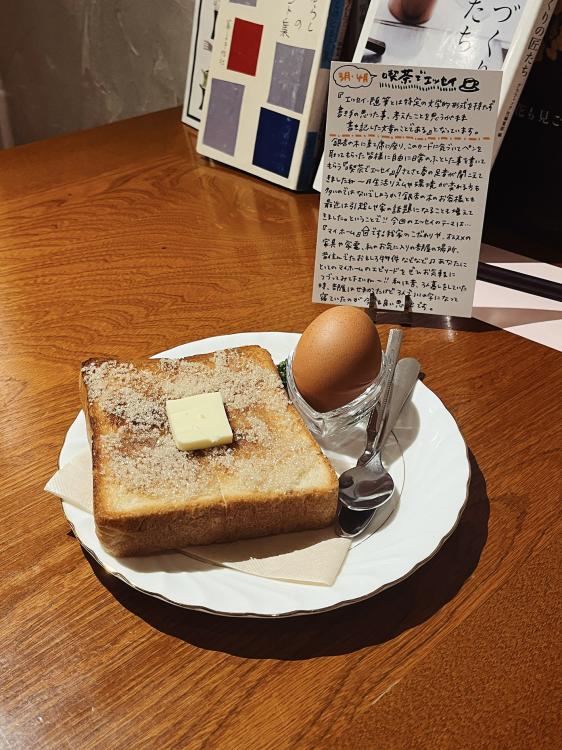 お砂糖の甘いのと、塩をつけた卵の塩っぱいのとを繰り返して楽しみます。お座敷でモーニングって新鮮だけど、不思議とほっとします。
