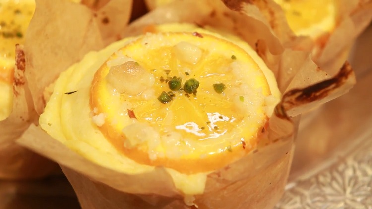 ブリオッシュ生地にラム酒と、オレンジキュラソーを使ったシロップを