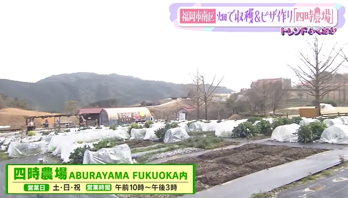 体験型アウトドア施設『ABURAYAMA FUKUOKA』(福岡市南区)の中に、四季折々の野菜を収穫できる体験型観光農園「四時(しいじ)農場」があります。