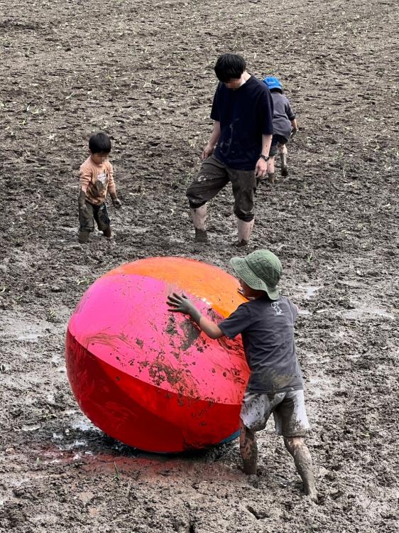 この日だけはお子さんの泥だらけに目をつぶって…田んぼの中で泥んこ遊びをしませんか?泥の中からお宝発見♪