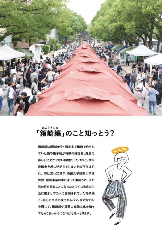 治時代から戦前まで箱崎で作られていた綿織物「箱崎縞(はこざきしま)」を復刻し企画販売をするテキスタイルアパレルメーカー「メゾンはこしま」が共同開催する、織物好き、パン好きのためのイベント。