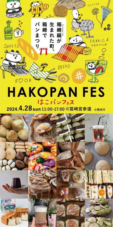 福岡の数々あるパン・イベントの中でも、出店店舗の数とラインナップの充実度はおそらく最高峰!そんな超ビッグなパンイベント『はこパンフェス』が筥崎宮参道で4.28(日)初開催される。