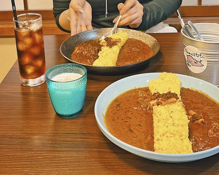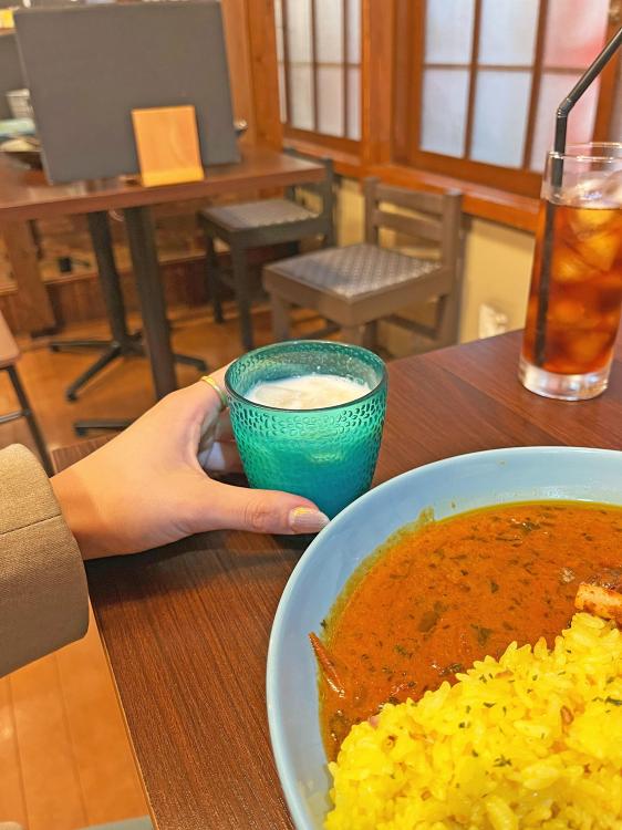 カレーのお供に、4月限定の『すりおろし白桃ラッシー』も注文。月毎に変わるメニューって、気になってついつい頼んでしまいます。おいしいご飯で、お腹も心もいっぱいに満たされました!