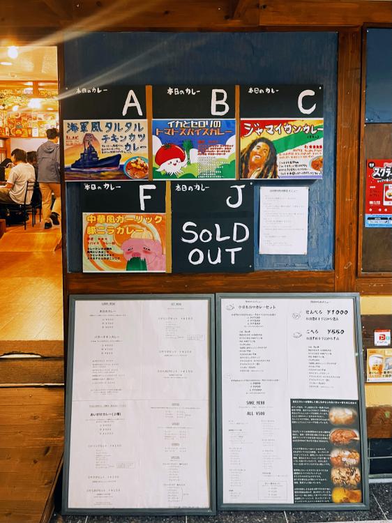 お店の入口に本日のカレーメニューが貼ってあるので、チェックして入店。お店のInstagramでも本日のカレーを確認できます◎