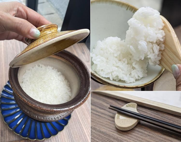 1人にひとつずつ土鍋で出てくる炊き立てのご飯が『食堂おわん』の目玉。土鍋は福岡県・東峰村で作られた「小石原焼」です。