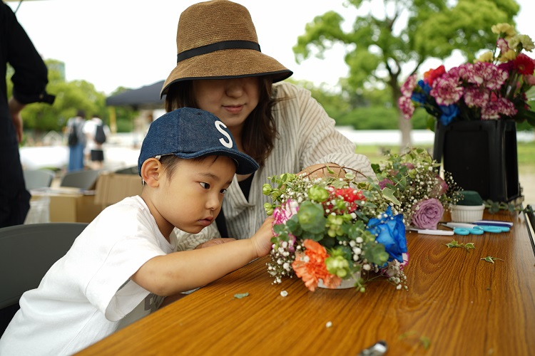 福岡市が行っている花によるまちづくりの取り組み「一人一花運動」と連動したイベント。“親子で学ぶ花や植物”をテーマに、ブーケ作りなどのワークショップや、金魚すくいならぬ“花すくい”、スポーツ体験などを楽しめる2日間です。